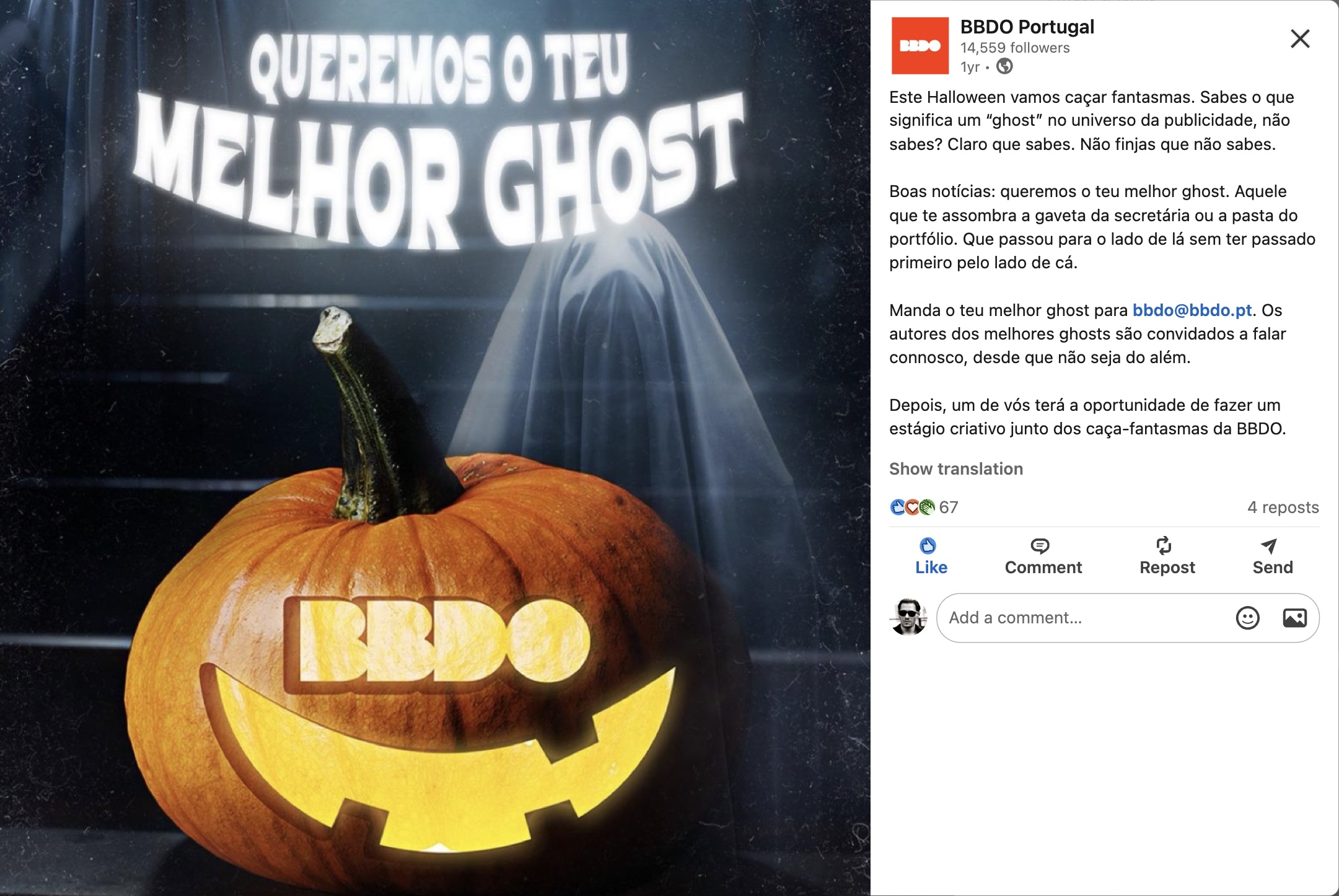 Um post (ou melhor — um ghost) de Halloween que valia um estágio criativo na BBDO Portugal.